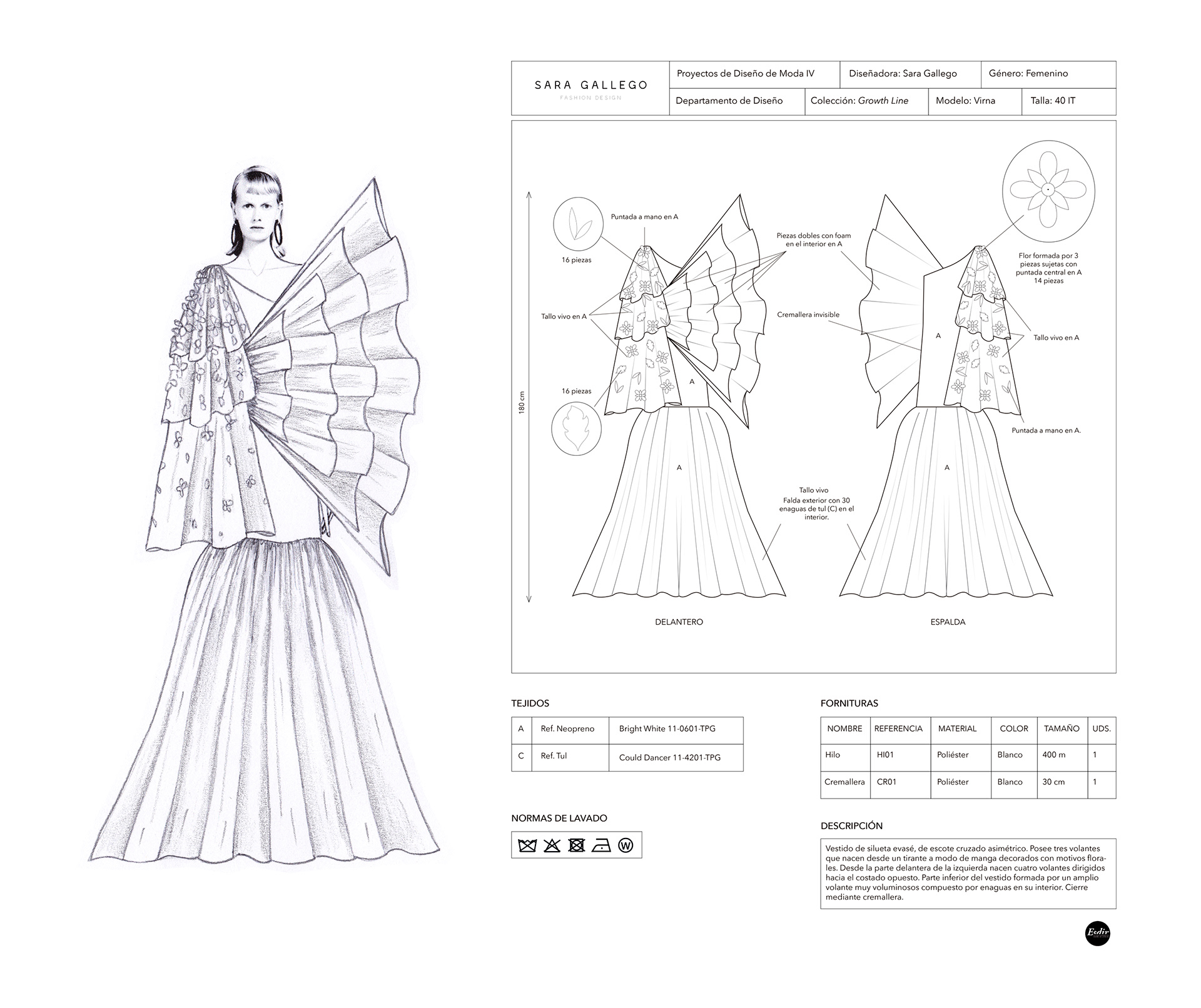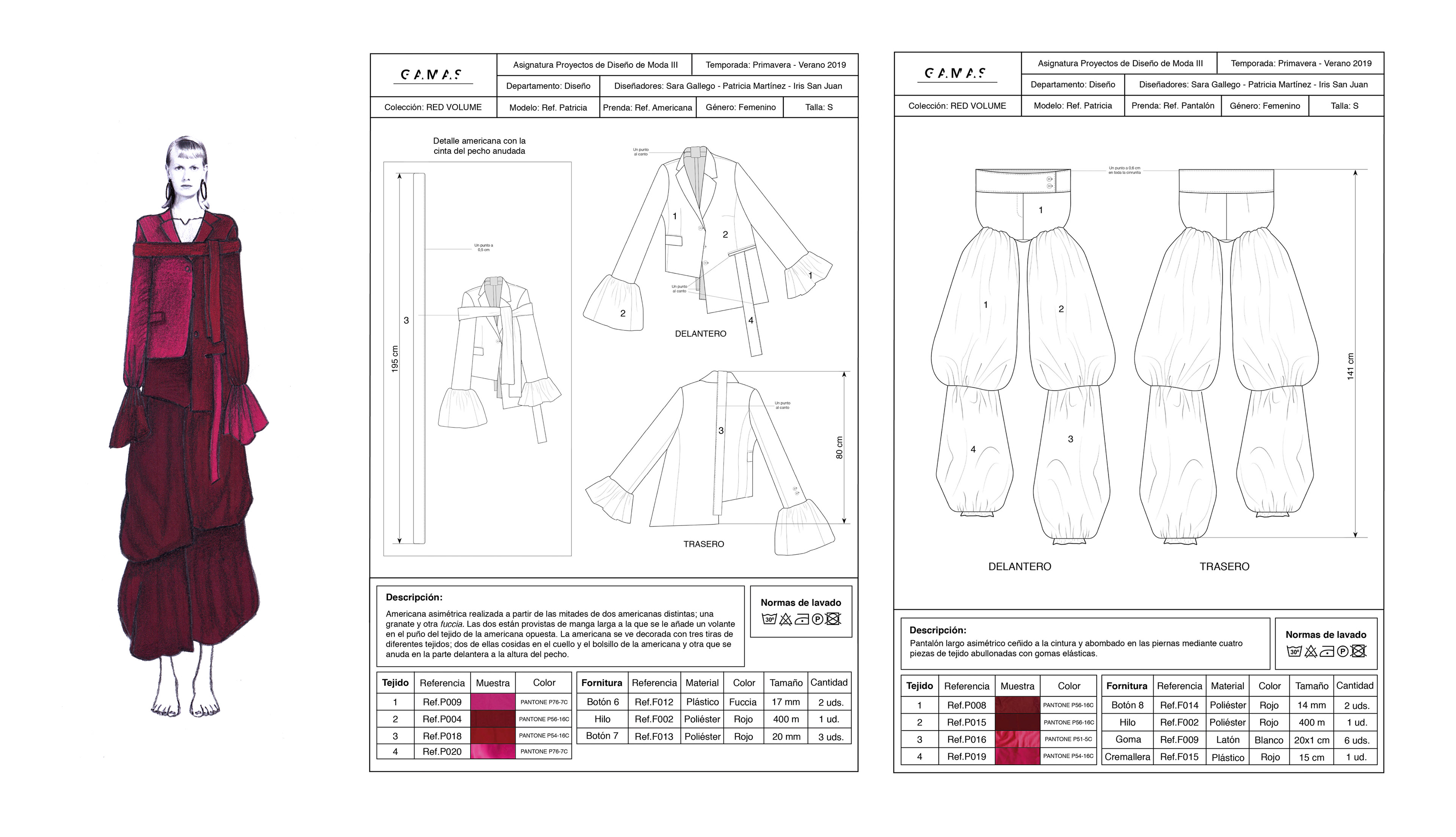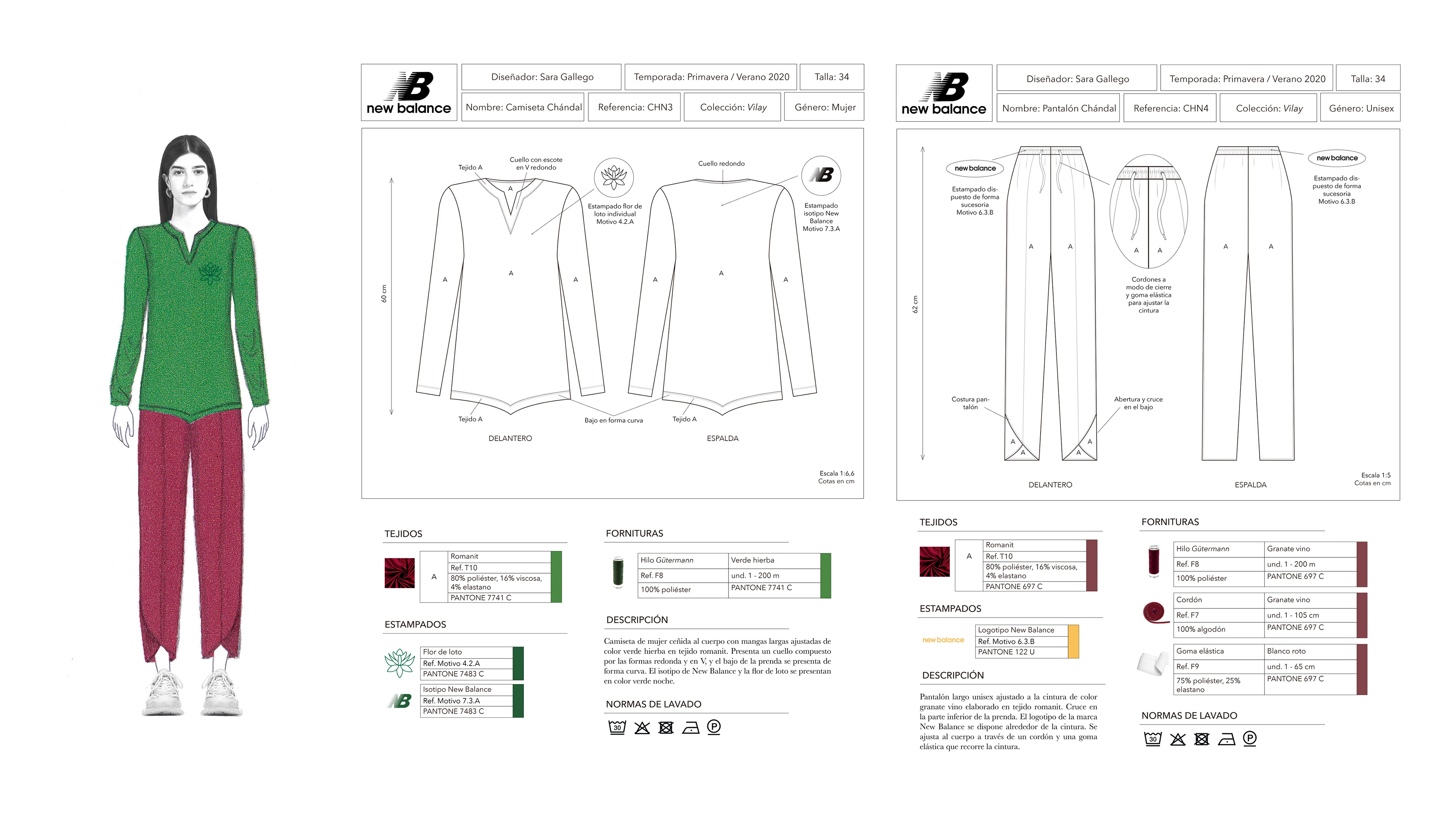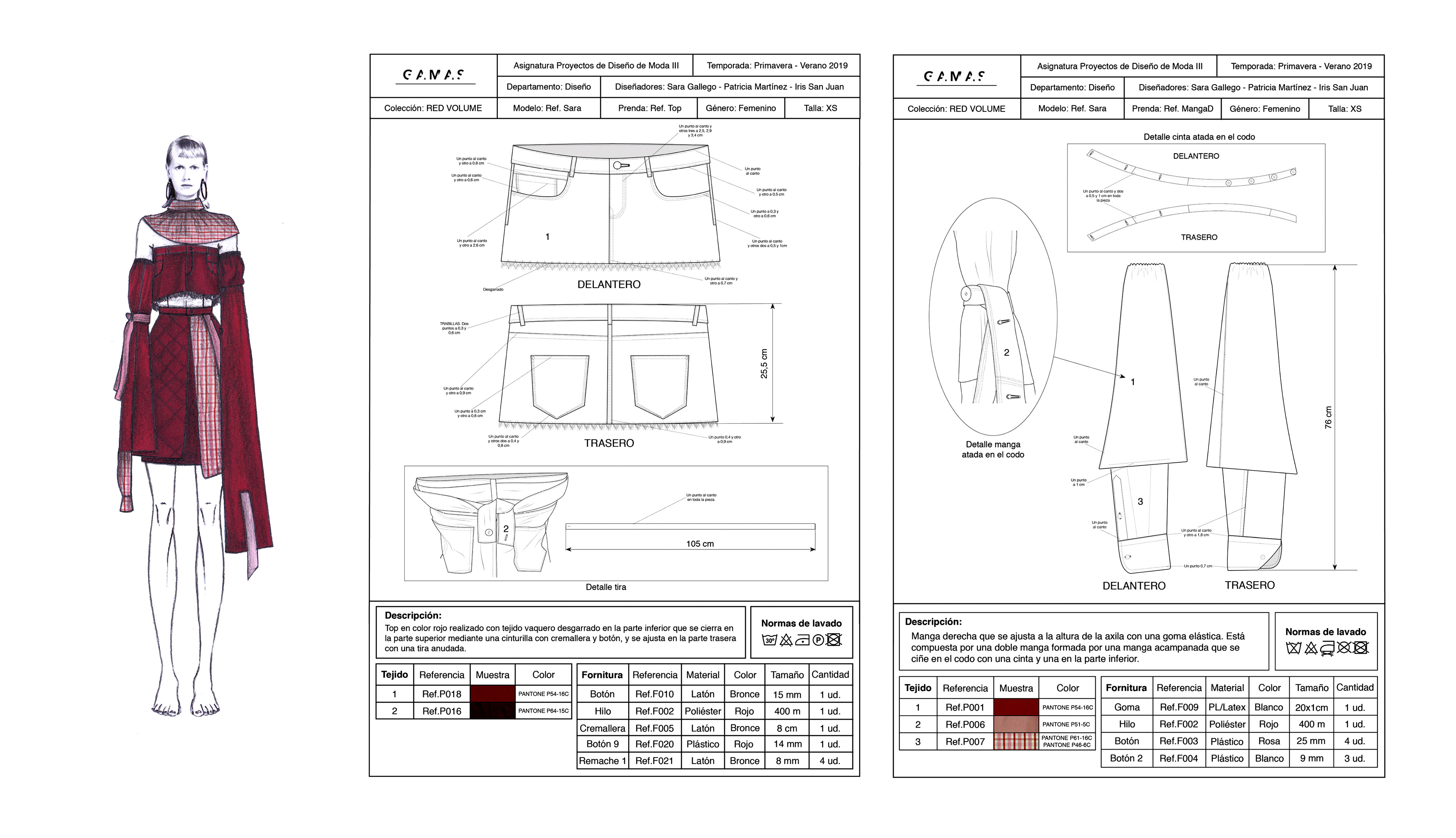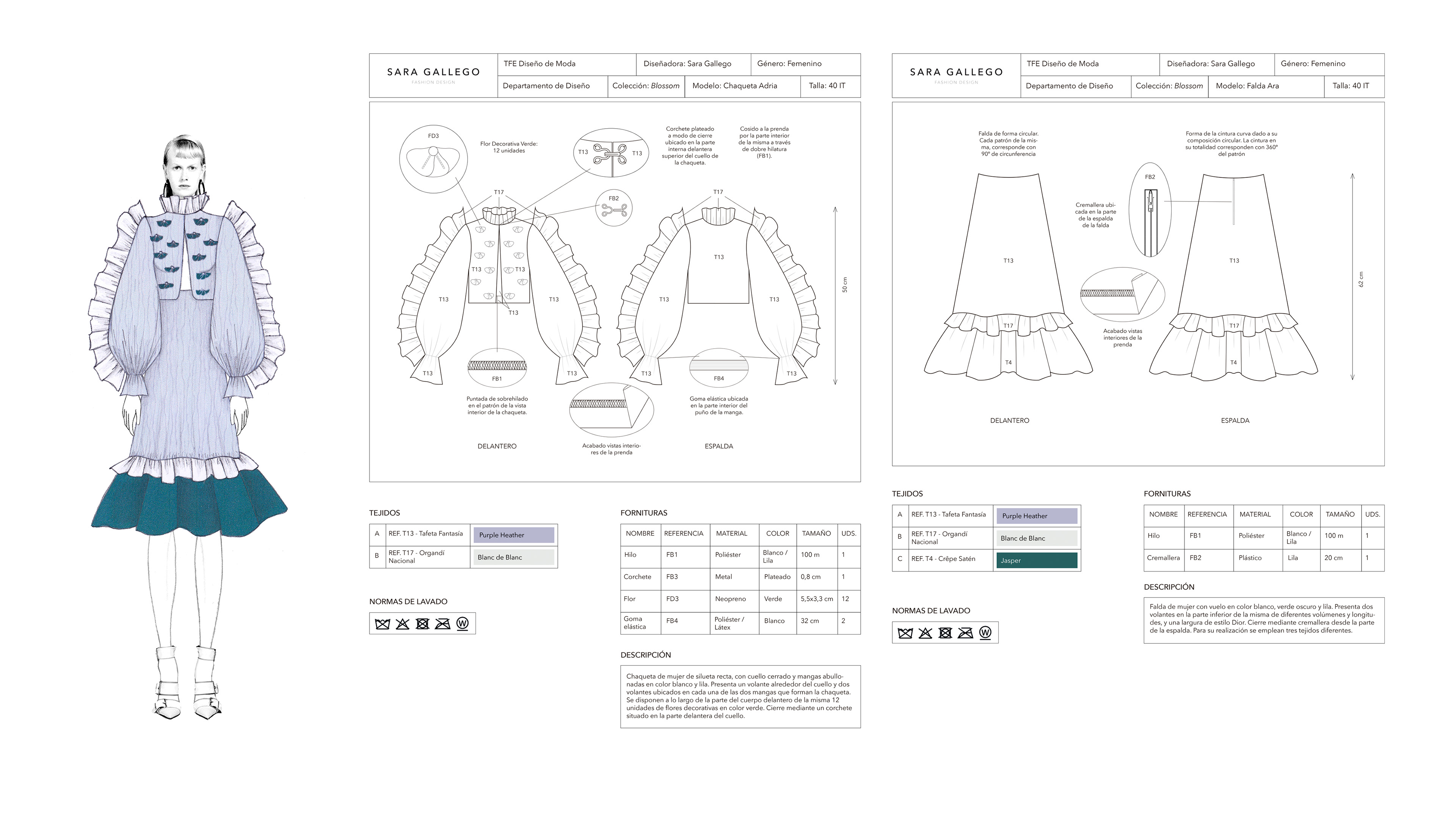 Collection of tech packs or technical sheets and illustrations of garments and accessories made for different fashion design projects.